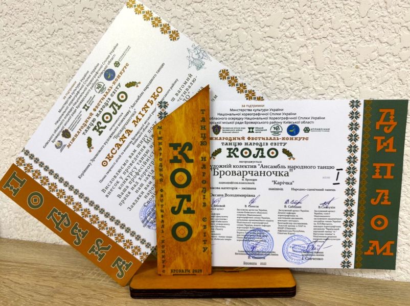 8 листопада 2025 року у рідних Броварах зразковий художній колектив «Ансамбль народного танцю «Броварчаночка» (художній керівник – Оксана Мінько) знову підтвердив свій високий рівень, виборовши перше місце у номінації «Народно-сценічний танець» на Міжнародному фестивалі-конкурсі танців народів світу «Коло» під патронатом Міністерства культури України!