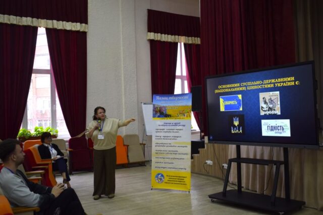 Яскравим акцентом заходу став виступ доктора культурології, професора, Заслуженого працівника освіти України, керівника гуртка – Ольги Копієвської, яка провела практичний тренінг «Гейміфікація як інструмент ціннісно-орієнтованого навчання».