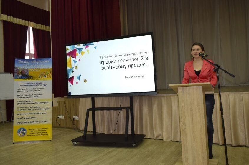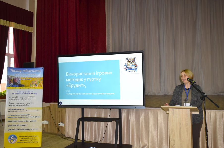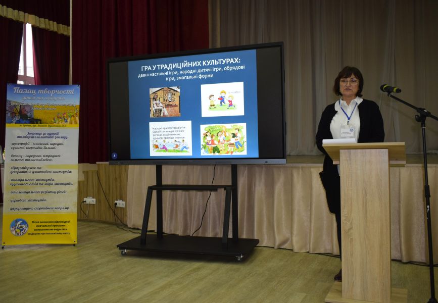 Про практичні аспекти використання ігрових технологій в освітньому процесі ПТДЮ доповіла Тетяна Котенко, художній керівник закладу. Вона вказала, що їх ефективність значною мірою залежить від правильного добору форм і методів відповідно до вікових особливостей вихованців.