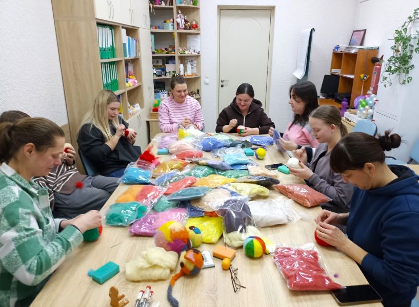 28 січня 2026 року мами вихованок зразкового художнього колективу «Хореографічний колектив «Феєрія Денс» зібралися у затишному, натхненному просторі практичного психолога ПТДЮ Оксани Луценко, аби на мить зупинитися й дозволити собі просто бути. Через м’яку арт-терапевтичну практику валяння з вовни учасниці знімали напругу, заспокоювали думки, відновлювали відчуття внутрішньої опори.