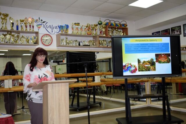 Виховний проєкт «Національно-патріотичне виховання дітей та учнівської молоді засобами позашкільної освіти» презентувала методист – Валентина Сахно. Вона акцентувала, що цей проєкт – не лише про виховання, а про формування покоління, яке вірить у свою державу, поважає її традиції та творить її майбутнє, а також  вказала мету, завдання, очікувані результати, актуальність, форми та методи щодо організації національно-патріотичного виховання, які застосовувались у закладі протягом минулого навчального року. Методист зауважила, що протягом звітного періоду усього було проведено 49 заходів з національно-патріотичного виховання, у яких взяли участь майже усі педагоги та вихованці ПТДЮ.