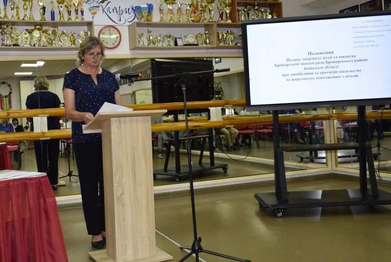 З Положенням Палацу творчості дітей та юнацтва про запобігання та протидію насильству та жорстокому поводженню з дітьми, що спрямоване на створення безпечного та дружнього освітнього середовища, ознайомила присутніх Оксана Луценко, практичний психолог закладу. Педагог надала важливу інформацію щодо захисту дітей від усіх форм насильства та запропонувала алгоритм дій реагування на випадки булінгу (цькування) в закладі, розроблений відповідно до наказу Міністерства освіти і науки України «Деякі питання реагування на випадки булінгу (цькування) та застосування заходів виховного впливу в закладах освіти» від 28.12.2019 №1646 та рекомендацій освітнього омбудсмена.