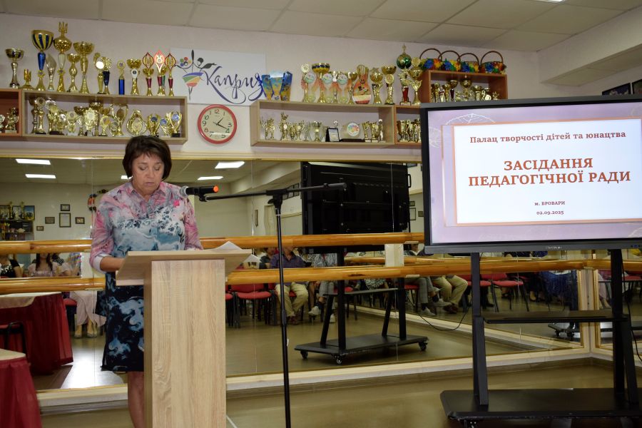 Традиційно на початку засідання виступила директор закладу, яка наголосила, що новий 2025/2026 навчальний рік буде динамічним та орієнтованим на адаптацію до сучасних викликів, а у закладах позашкільної освіти, в тому числі і у Палаці творчості дітей та юнацтва, пріоритетними залишаться питання створення безпечного, комфортного, інклюзивного освітнього середовища й підвищення якості освітньої діяльності.