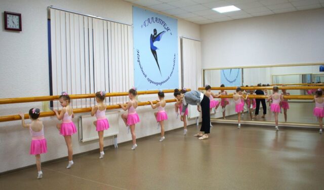 Далі хореографічне заняття продовжилося вправами біля станка, що є основою класичної школи танцю. Маленькі балеринки виконали: